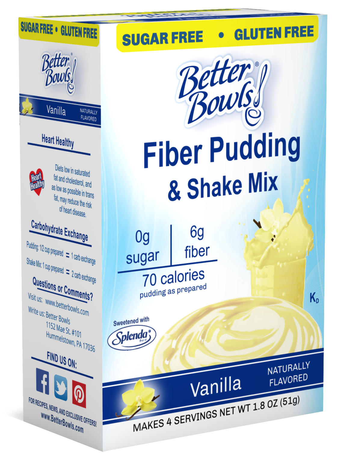 Better Bowls is the leading brand for great tasting and healthy sugar-free, low sodium, pudding and gelatin mixes. Made with Splenda and high in fiber, calcium & potassium, these items make quick and healthy snacks & desserts and are also great for digestive health. Great for Diabetics, Bariatric Diets and Weight Management.